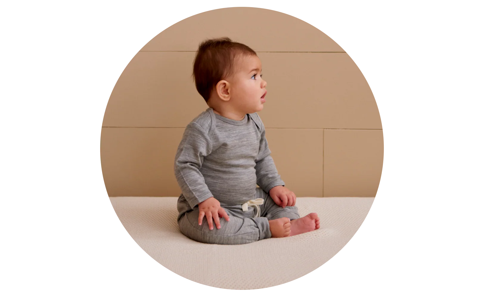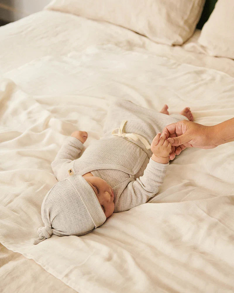 Merino wool is warm, soft and non-irritating, the perfect fabric for baby. It insulates, absorbs body moisture, stays warm even when wet, and breathes, helping regulate little one’s body temperature. We use only the finest merino fibres, making the clothing gentle, durable, and not itchy or scratchy against baby's delicate skin.