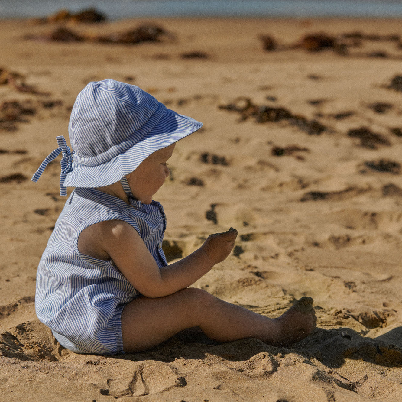 Elevate your little one's wardrobe with our sweet Gala Suit, crafted from a soft blend of organic linen and organic cotton. This playful piece features gathered frill straps and a beautifully shirred bodice adorned with a ruffle neckline