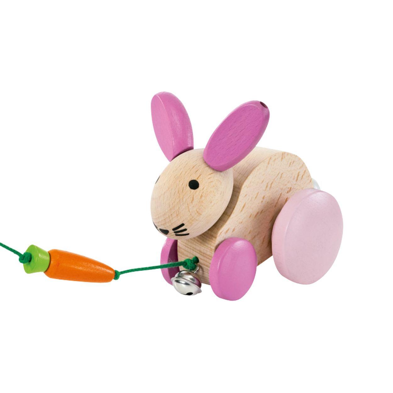 Hanna Hoppel is a on a carrot hunt! When this sweet rabbit is pulled along, she hops after the carrot on the string and rings her little bell.